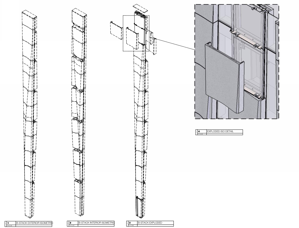 Facade detailing, fabrication and installation of glass and steel components, and cnc cut files for machined stone components from a vendor in Italy for this commercial building at 277 Mott Street.