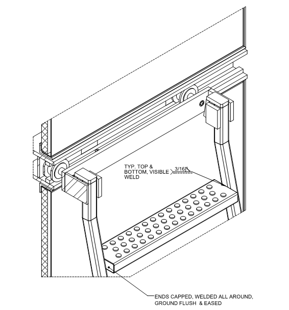Perforated steel cabinet doors are a feature element in this residential project.